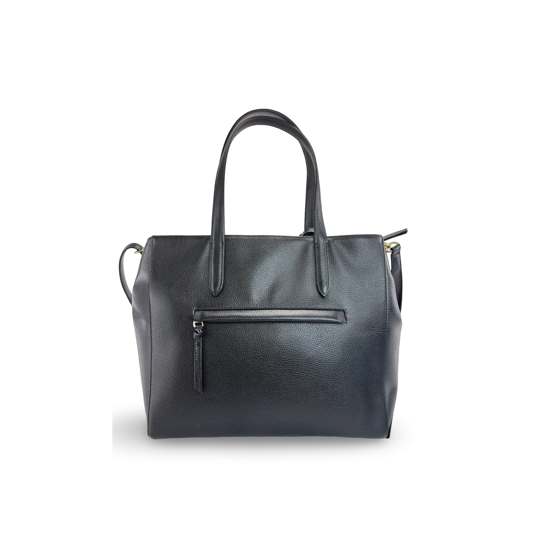 Elegante y versátil, este bolso shopper está elaborado en 100% cuero vacuno liso y grabado, con herrajes en zamak que garantizan durabilidad y estilo. Su diseño innovador permite llevarlo con pliegue hacia dentro o abierto, adaptándose a tu look y necesidad del día. Con dimensiones aproximadas de 28 x 31 x 10 cm, cuenta con doble compartimento interno, incluyendo bolsillo con cremallera, bolsillo de fácil acceso, monedero con cremallera y porta llaves con mosquetón. Además, incorpora cierre con cremallera y broches, correa bandolera ajustable y bolsillo trasero de seguridad con cremallera. Hecho en Colombia, combina funcionalidad, organización y diseño sofisticado.