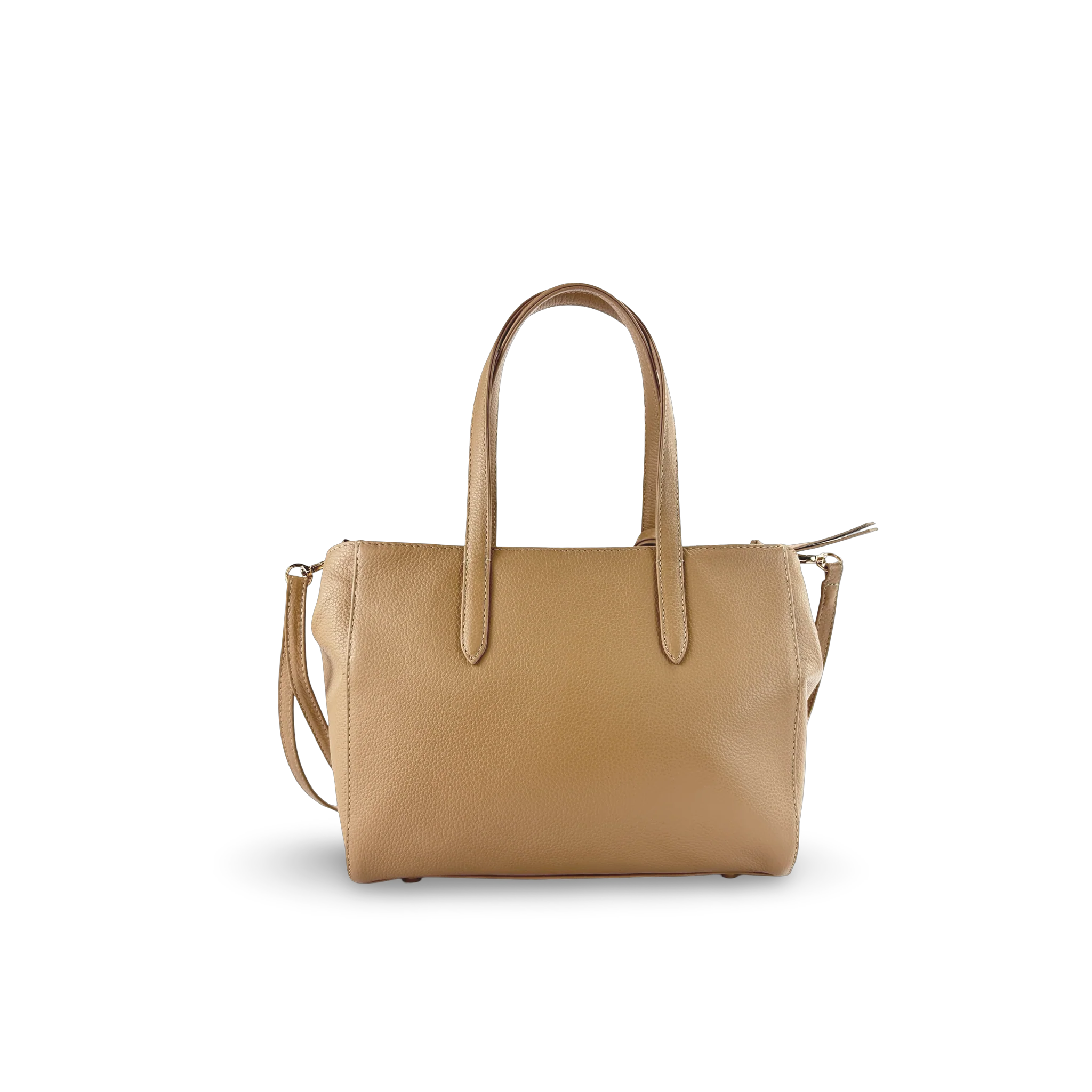 - Compartimentos: dos compartimentos abiertos, uno central con cremallera, un bolsillo interno con dos divisiones, un bolsillo interno con cremallera y un compartimento parte de atrás del bolso con cierre de cremallera