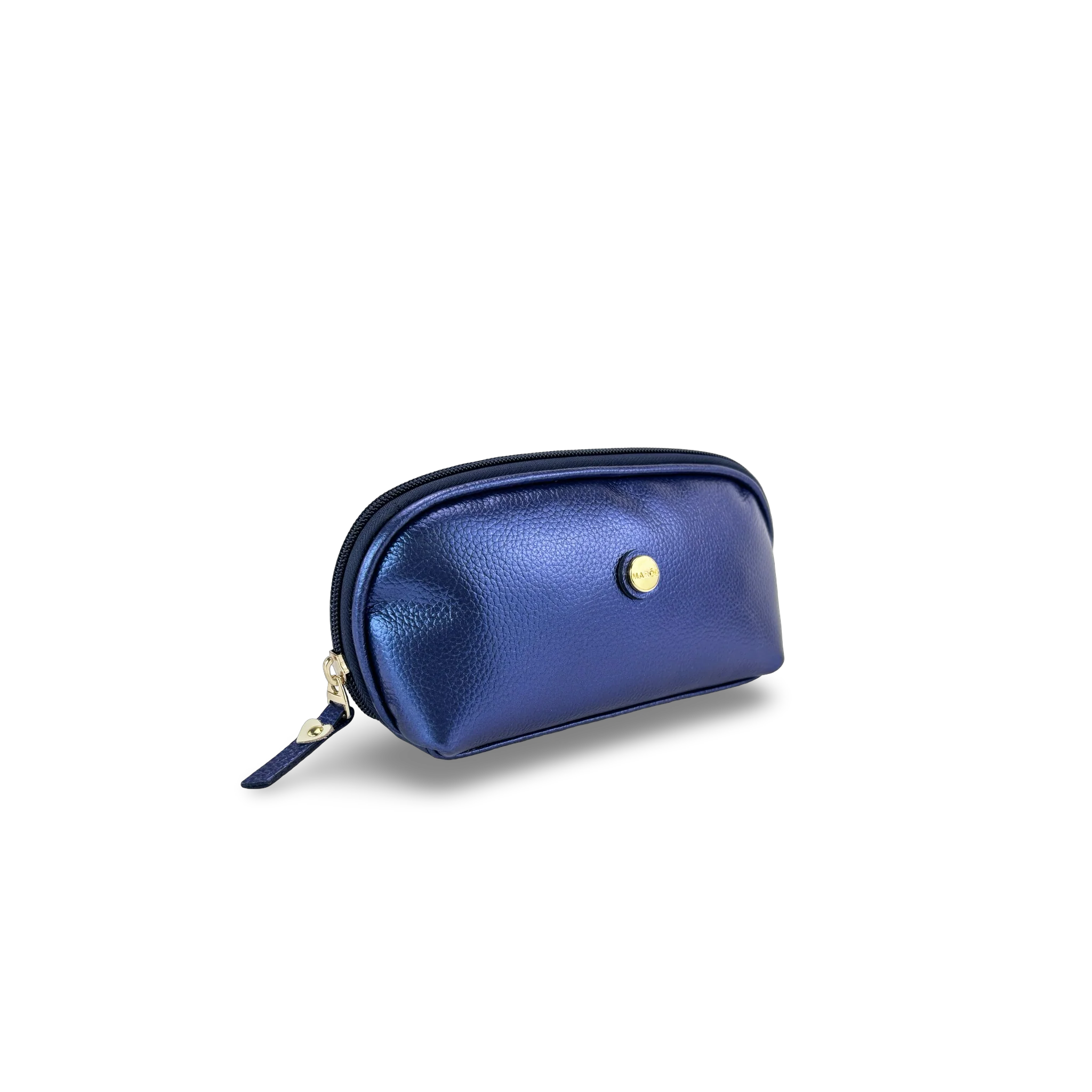 En la parte frontal destaca un aplique metálico dorado con el logo de la marca Maroc, que aporta un toque sofisticado y distintivo. Su cierre con cremallera asegura la protección de tus objetos. Ideal para usar dentro del bolso o en viajes.