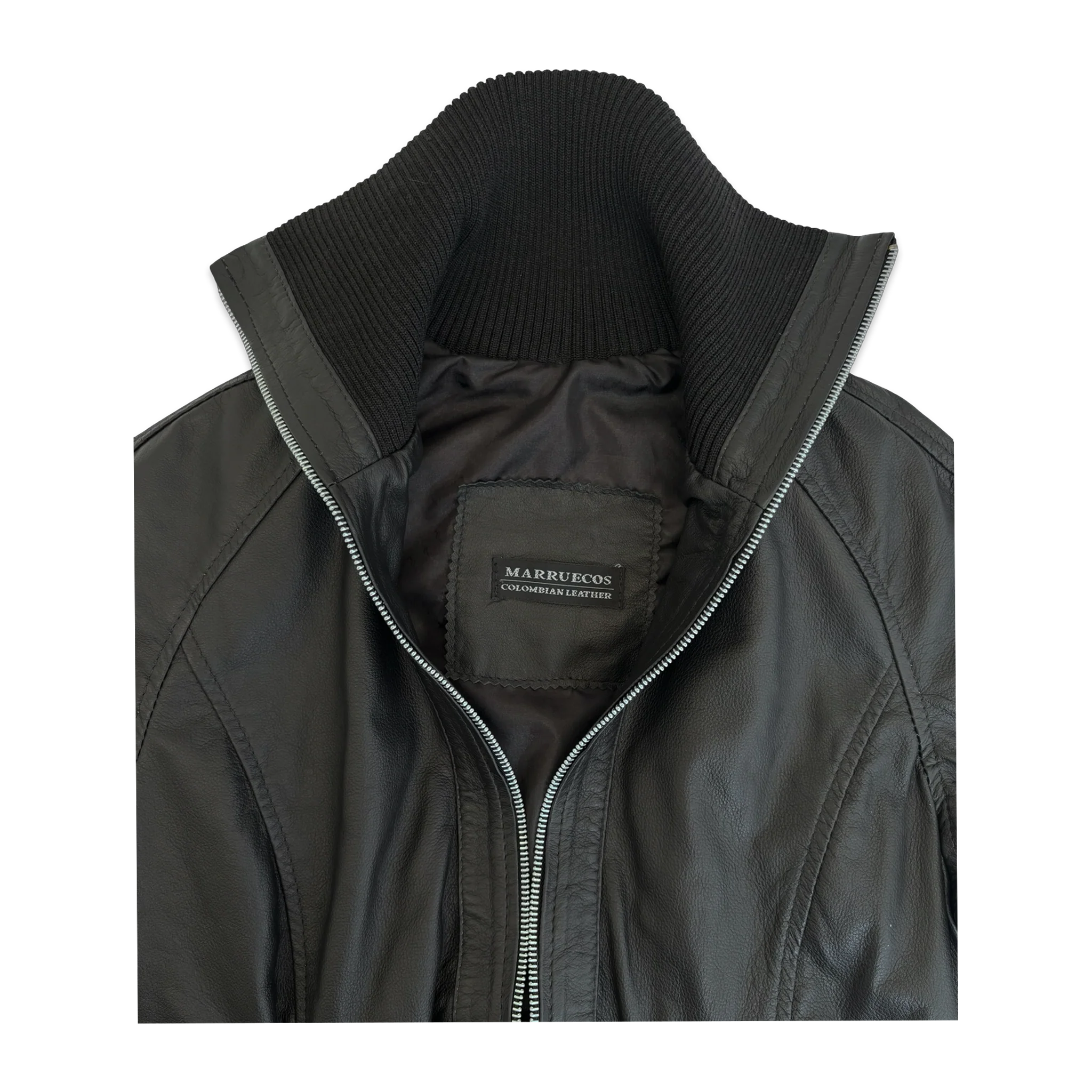 Una prenda moderna y sofisticada que estiliza la figura y eleva cualquier look, ideal para salidas nocturnas o outfits casuales. Su diseño incluye cuello RIB acanalado, bolsillo interno con cierre de cremallera y detalle de la marca Marruecos en la parte interna. El cierre frontal de cremallera aporta comodidad y un acabado limpio y contemporáneo. Fabricada en Colombia en cuero vacuno liso, con forro en poliéster y herrajes resistentes. Disponible en tallas S, M y L.