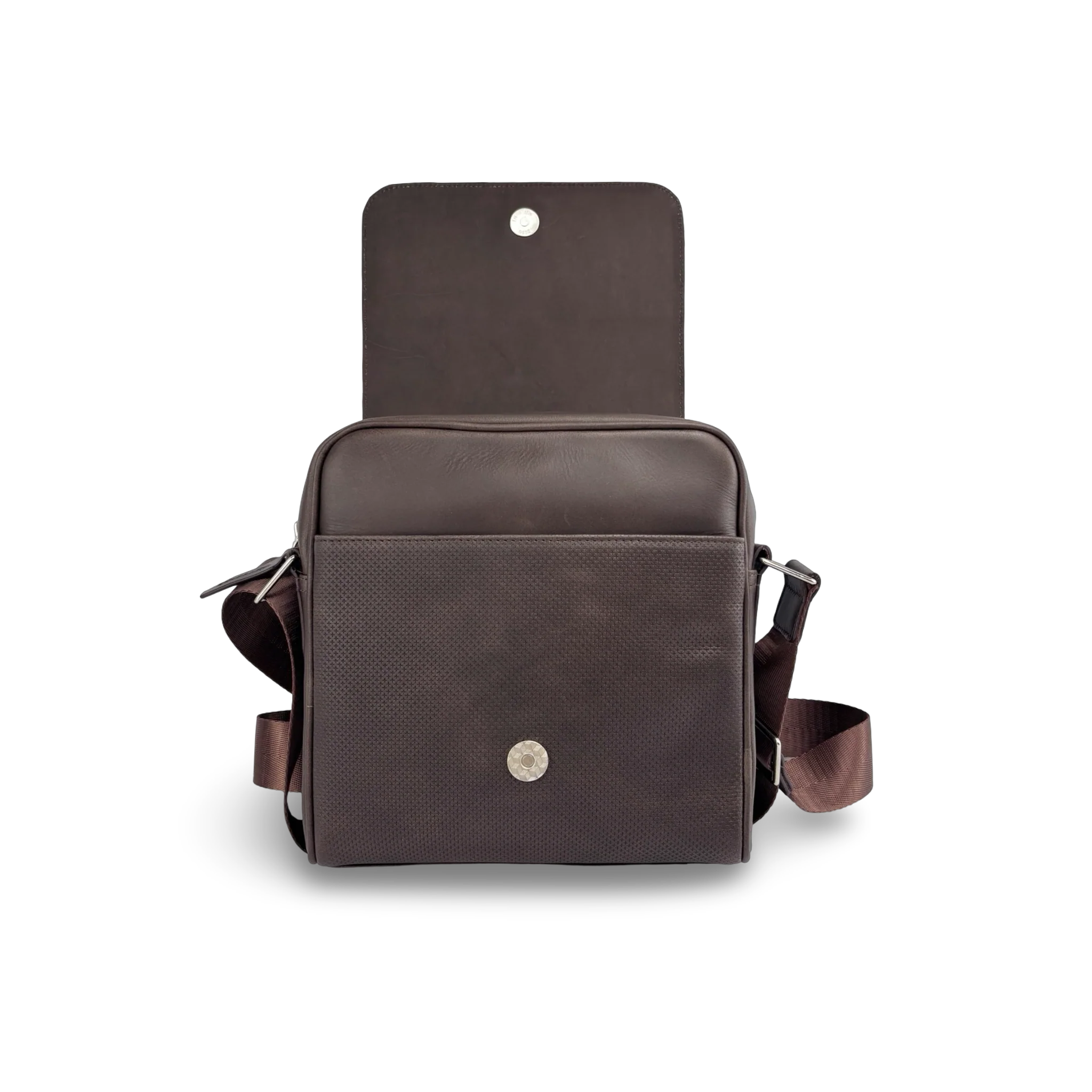 Un accesorio práctico y moderno, ideal para reemplazar los bolsos de pecho y llevar tus esenciales con más estilo. Cuenta con un compartimento principal amplio con tapa tipo solapa, bolsillo externo abierto, bolsillo interno con cierre, dos bolsillos internos adicionales y un espacio abierto ideal para el celular, además de porta esferos para mayor organización. Incluye bandolera ajustable para un uso cómodo. Fabricado en Colombia en cuero vacuno liso, con forro en poliéster y herrajes resistentes. Dimensiones aproximadas: Alto 20 cm x Ancho 20 cm x Fondo 4 cm.